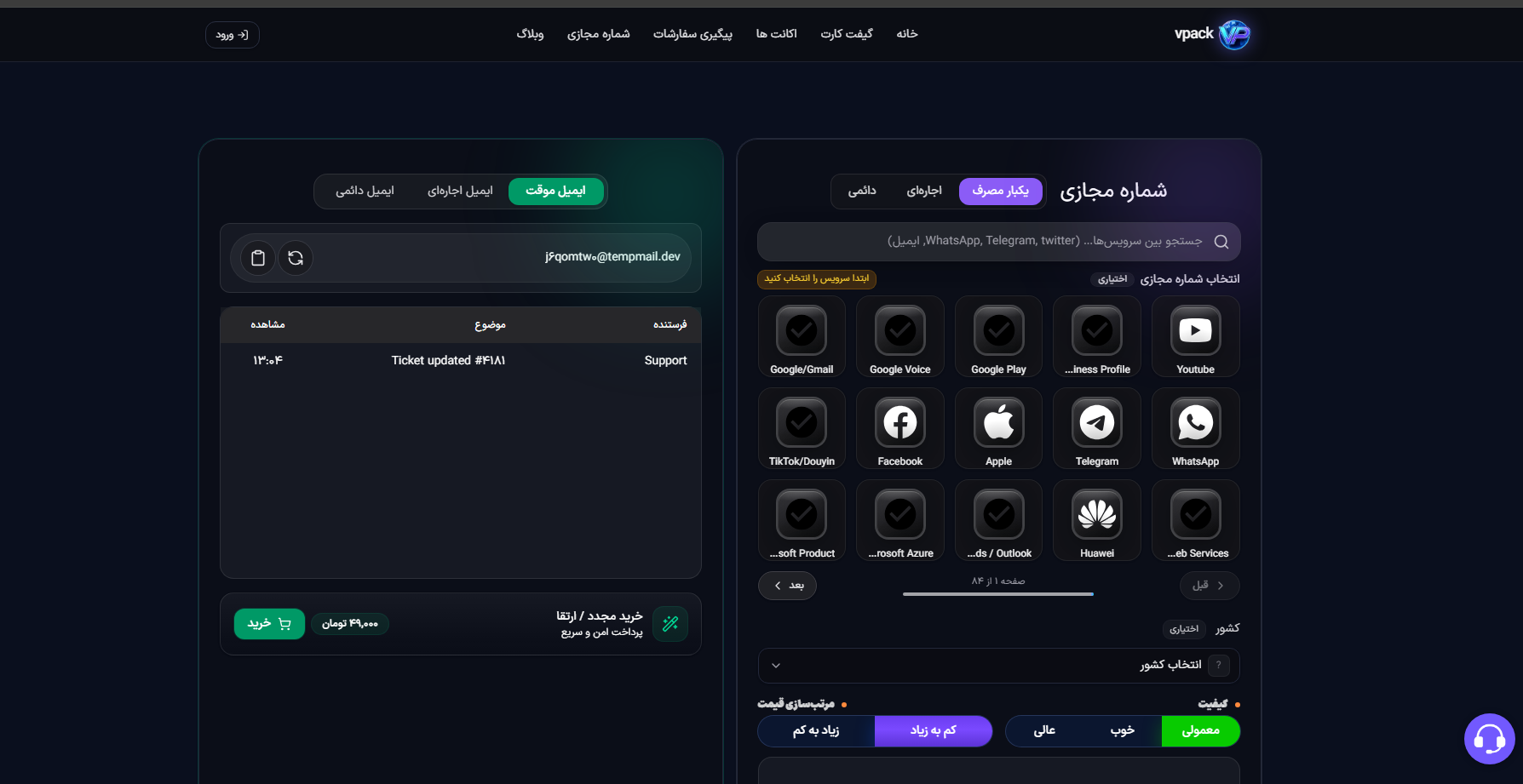 اگر میخواهید بدون دردسر ثبتنام کنید، کد تأیید دریافت کنید و نگران مسدود شدن حسابها نباشید، همین حالا وارد v-pack.ir شوید و شماره مجازی مناسب خود را دریافت کنید.